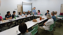 懇親会は全員ひとりひとりが自己紹介、今置かれている状況などをお話されました。避難されている方達は、国家公務員宿舎に住んでおられますが、来年3月に避難区域が解除されるために、退去しなければならなくなったそうです。退去と言われても、すぐに住める家があるわけでもなく、病院や商店など環境も整っていない状況です。それは以前にも書きましたが、南相馬の仮設の方達の悩みと同じようなことでした。ある方はご主人の故郷の熊本にと考えていたら、大地震になってしまったり、ある方は、もう80歳でひとりなので全く行くあてがないとのことで、ご本人たちの肉声で聞いていると、大変さがひしひしと伝わってきました。福島の復興住宅は抽選ということで、今まで一緒に頑張ってきた仲間同士で、抽選に当選した人が出たりした場合、難しい問題も出てくるようです。それにしても、政治家はもっと真剣に取り組んでいただきたいと思うばかりです。和光市の社会福祉協議会の方と、和光市に避難されている方達もみえていました。いろんな地区に避難されているんですね。