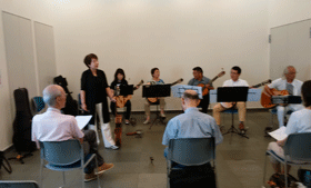 そんな作業のなかで、今回驚いたことがあります。「Eries’ひきがたりアンサンブル」の歌声が素晴らしく良くなっていたことです。パソコンにヘッドフォーンを差し込んで聴いてみるとよくわかります。ほんとに嬉しい驚きでした。これは昨年頃から、ディレクトフォースの合唱団員である、稲垣さんと脇田さん達が参加して下さっていることにも大いに関係があると思います。最初のうちは、合唱団のクラシック調の歌い方と、私が指導している弾き語りメンバーの自然な歌い方の違いがかみ合わずに、少し困った状況になることがありましたが、いつのまにかお互いが歩み寄る形で融合されていたのです。
