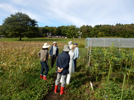 翌日朝食の後、昨晩研修生たちの司会と「ソーラン節」の中心になって踊っていたI君が畑の案内をしてくれました。私はあんまり踊りが上手かったので、すっかりI君のファンになり、ツーショットで写真を撮りました。とても良く写っていましたよ。それから、スタッフの方から気功の手ほどきを受けたり、様々な場所を案内していただきました。