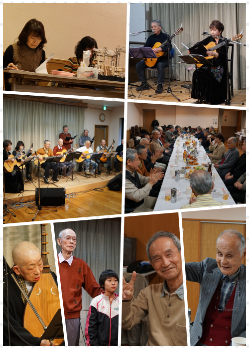 ただ、当日を迎えるにあたっては、いつもながらこの会の準備と当日の役割の多様さは言い表しようもないくらい大変なのですが、それに加えて来られなくなったという連絡が次々と入って、10人以上にもなりました。風邪や怪我など、体調を悪くされた方が多かったです。そんな時に周りの人たちが、だんだんみんな高齢化してきてるから仕方ないというし、それに一番お客様をたくさん呼んでくださっていた、91歳になる琵琶の舩水さんに至っては、「私の周りはもう殆ど亡くなってしまって、生きている人でも病気で来られなくなっている」と言い始めています。そろそろ潮時かな?という思いが頭をよぎりました。