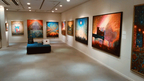 初日に展示する作業も親しい方達の手で行われました。本田もお手伝いに伺い、私もオープン少し前に行って、そんな様子を見ていたので一層感慨深いです。作品が一斉に並べられると、それはそれは見事な展示会場となりました。そして、全体的に赤の色彩が際立って、いつもは温厚でやさしい近藤さんですが、驚くほどの情熱的なパッションが伝わってきました。このあとは故郷の九州でも個展を開催することになっているそうです。