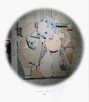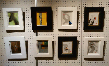 現代美術作家の西尾路子さんの作品(左:平面)(右:立体) |