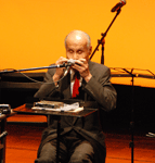 まずは、ゲストの琵琶の舩水さんは「ソングセラピスト枝璃貴子」というタイトルでオリジナルの語りを作ってくださいました。舩水さんはこれまでご両親やご主人を亡くされた時も、音楽などを聴いた時も一度も涙を流したことがないのに、私のDVDの中の歌を聴いた時に、不思議なことに初めて涙が溢れたとおっしゃって、今回の語りも泣きそうになって、ほんとは3倍もあったのに短くしてしまったそうです。でも、皆さんとても感動したとおっしゃっていました。”e楽坊” こと精神科医の牧野先生は、私のソングセラピストについて、なにか一言とお願いしていましたところ、いつものバイオリン演歌のなかで、私のセラピーコンサートに対する考え方を重ね合わせて語ってくださいました。すごく理解して下さっていることを知り、とても感服しました。ハーモニカの竹内さんは、私がリクエストした「チャルダス」を演奏して下さいました。すごくテンポの速い曲なのに、普通のハーモニカを2本いっしょに吹いたりして、こんなことが出来るのは竹内さんしかいないと思います。