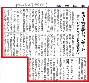 さて、「わがまま気ままコンサート」ですが、「セラピーコンサート」とは対極に、なんにも気を使わないで自分が歌いたい歌だけ歌うコンサートなので、練習の時から楽しかったし、長年やってきて初めて自分自身が楽しめたコンサートになりました。特に、「クラシックギターの弾き語り」を始めた頃の原点である、クラシックの歌を声楽的な歌い方ではなく、「クラシックギターの弾き語り」としての独自の歌い方を作り上げてきた成果を、カッチーニの「アベ・マリア」と、オペラのアリア「君よ知るや南の国」でご披露できたことはとても嬉しいことでした。そして皆さんからも「君よ知るや南の国」がよかったと言っていただくことが出来ました。