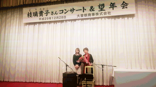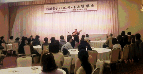 ステージの上の横断幕に大きな字で「枝璃貴子コンサートと望年会」と書いてあったのです。あくまで望年会の添え役としての30分コンサートという認識で行ったので、驚いてしまいました。