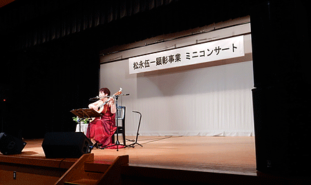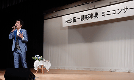 除幕式当日の天気予報は雨ということで心配されましたが、式の間は降ることなく、終わったとたんに雨が降り出したので、みんな松永先生が守ってくれたに違いないと口々に言っていました。それに、とても寒くて、1時間も外に座って、その30分後に私がコンサートで歌うことになっていたので、鼻と喉の調子が悪かった私はすごく心配でしたが、後半になってきたら鼻と喉が急にすっきりしてきて、コンサート本番は本来の声で歌うことが出来ました。そしてリハーサルで不安があった曲も全くミスなく完全なステージを務めることが出来たことは、私も松永先生が守ってくださったという思いでいっぱいでした。