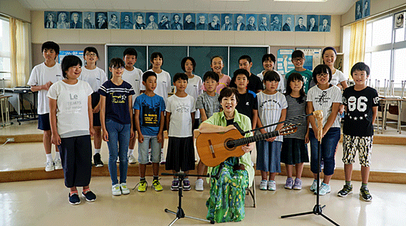 まずは、「ひまわりさん」のことは3月22日のWEB日記「ひまわりさんの記事からの展開」に書きましたが、5月21日に大島小学校と中学校の生徒たちと一緒に「ひまわりさん」を歌っているところをビデオに収録することになりました。