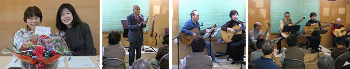 コンサートは予定していた内容どおり、全体に楽しくなごやかに、そして被災地の話なども織り込んで、私の活動を理解していただけるように進めることができたと思います。そしてゲストのハーモニカの竹内克好さんは埼玉県の元教育長さんであり、地元でのエピソードなどもお話してくださいました。飛び入りで私とデュエットしていただいた、すずきたけおさんは埼玉ギター協会の幹部であり、お二人によって、音楽会に重みや幅を添えていただき、お客様にも喜んでいただくことが出来ました。最後に合唱奏をした、山科さん、竹内正旭さん、山浦さん初め、関係者の皆さんが、音楽会終了後「大成功だった!」と喜んでくださいました。