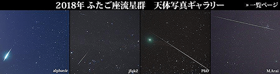 昨年の大晦日に秩父の家の前で、大きな北斗七星を見たことをWEB日記(2018年1月「新年のご挨拶」)に書きましたが、先日は同じ位置に立って、ふたご座流星群が流れ落ちる瞬間を4つも目撃することが出来ました。画像の左から2番目と同じでした。これからも秩父ならではの、いろいろな体験や発見をすることができることでしょう。
